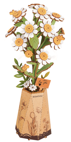 Model przestrzenny od Robotime umożliwia samodzielne złożenie przepięknego kwiatu rumianku umieszczonego w stylowej doniczce, która będzie mogła ozdobić każde pomieszczenie. Powstała konstrukcja prezentuje się bardzo realistycznie - białe płatki kwiatu, żółty środek i jego zielone łodygi idealnie ze sobą kontrastują, tworząc niepowtarzalną kompozycję, wielu kojarzącą się z budzącą się do życia wiosną. Wszystkie elementy stworzone są z drewnianej sklejki - ich połączenie i złożenie wymaga maksymalnego skupienia oraz zachowania precyzji. Gotowa kompozycja ma ok. 29 cm wysokości i składa się łącznie ze 124 elementów.