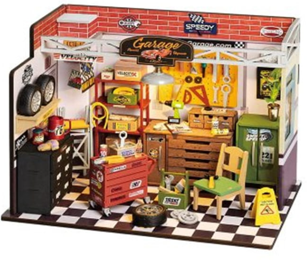 Warsztat od Robotime to bardzo szczegółowa konstrukcja, która posiada pełne wyposażenie oraz wszystkie niezbędne akcesoria i bibeloty. Aż 157 elementów umożliwia złożenie modelu nowoczesnego warsztatu o wymiarach 24 cm x 17 cm x 15 cm. Wewnątrz znaleźć można zestaw narzędzi, szafki, składaną drabinkę, czy zawieszone na ścianie opony i akcesoria, które zapewniają realistyczne wrażenia. Oświetlenie dodaje konstrukcji wyjątkowego charakteru!