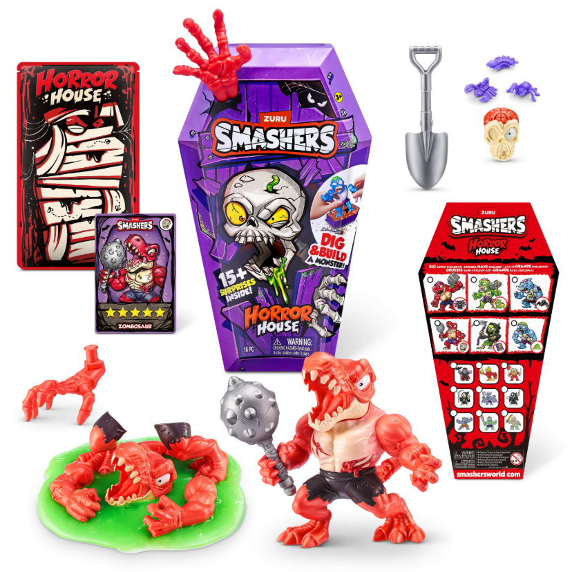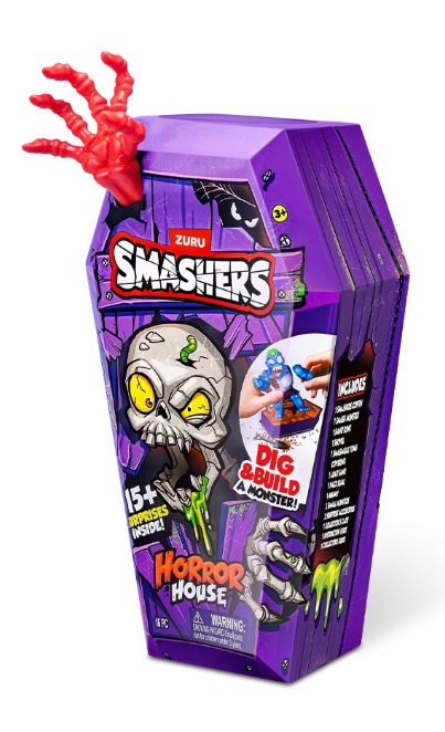 Wyrusz na mrożącą krew w żyłach przygodę z Smashers Horror House aby ożywić potwora! Czy masz na tyle odwagi aby otworzyć trumnę i odszukać jednego z trzech potworów? Uważaj – niebezpieczeństwa czyhają na każdym kroku! Dom Strachów kryje 15 niespodzianek, sprawdź jak szybko uda ci się je odnaleźć.