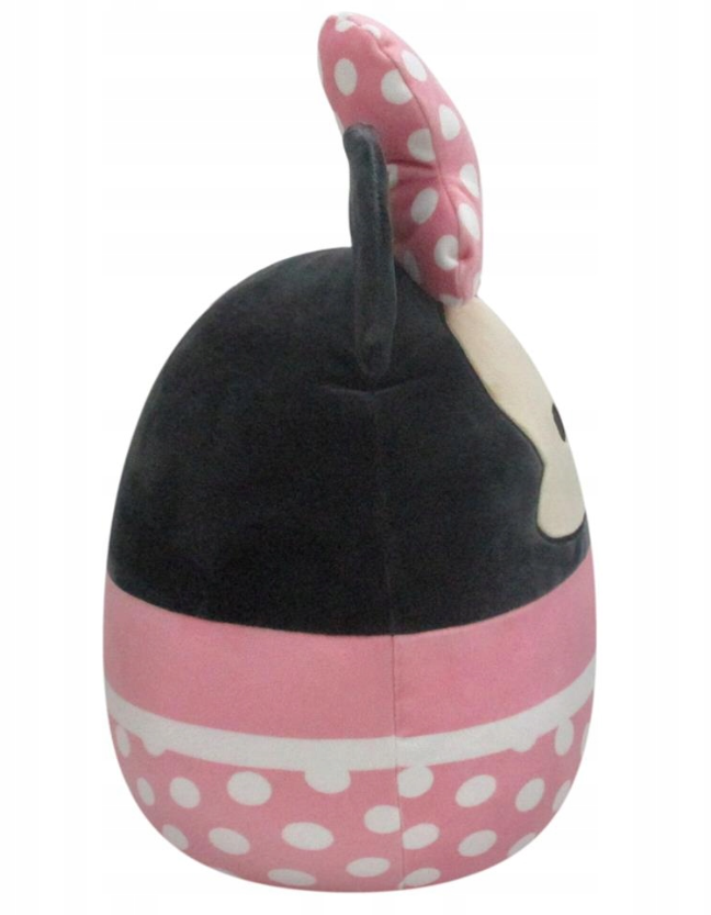 Squishmallows Disney to seria, prezentująca poszczególnych bohaterów najpiękniejszych bajek. Myszka Minnie w tej wersji mierzy 35 cm wysokości, ma czarno-różowe ciało, kostium w białe kropeczki, okrągłe uszka i dużą kokardkę na głowie. Jest niezwykle mięciutka i szybko stanie się ulubioną przytulanką na dobranoc! Zabawka dedykowana jest dzieciom powyżej 3. roku życia.