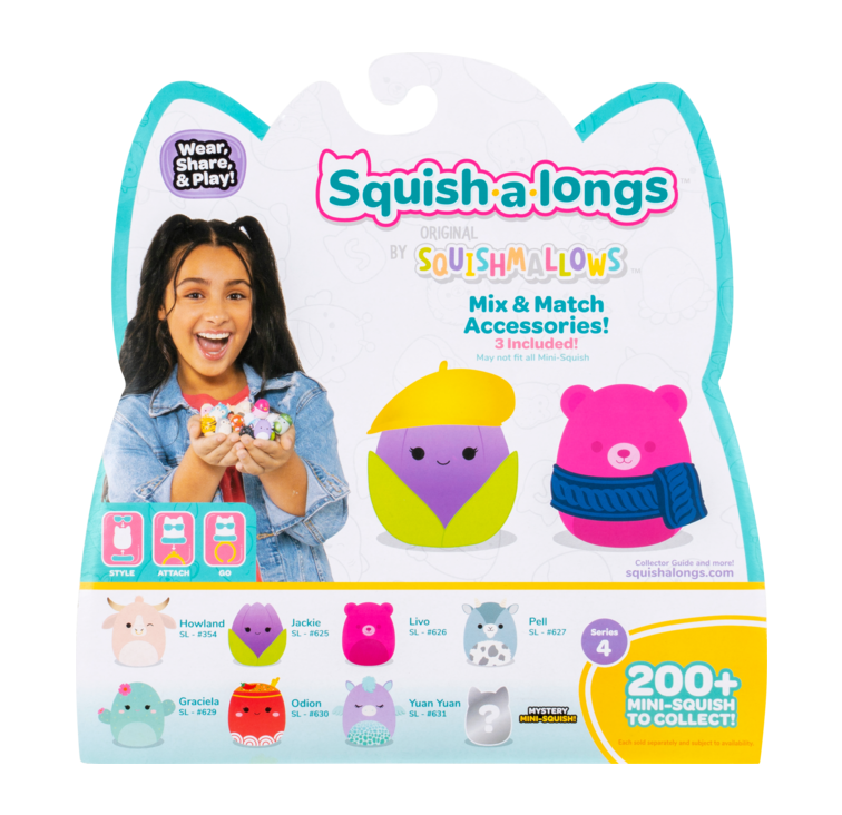 Te ulubione Squishmallows są od teraz dostępne pod postacią 2,5 cm figurek. Do zebrania jest ponad 140minisquishów, które możesz kolekcjonować, nosić je ze sobą przyczepiając do pierścionka, ustawić w pokoju, wymieniać się z innymi kolekcjonerami czy odgrywać scenki! To wszystko zależy od ciebie! Jedno jest pewne - z tymi małymi Squishalongs zabawy nigdy się nie znudzą, tym bardziej że w każdym zestawie znajdują się różne ciekawe akcesoria. Możesz je przypinać do pierścionka, przebierać w zabawne akcesoria takie jak okulary w kształcie serca czy maski do spania. Czy jesteś gotowy rozpocząć nową przygodę z Minisquishami? Czy znajdziesz wśród nich figurkę niespodziankę?