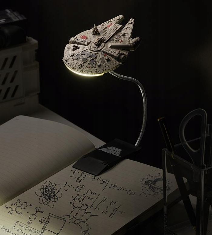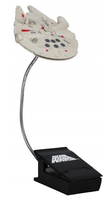 Lampka w kształcie Sokoła Millennium to fantastyczny gadżet, który zachwyci wszystkich miłośników serii Star Wars! Lampka posiada wygodny klips, umożliwiający przypięcie jej w całkowicie dowolne miejsce - można zatem ustawić ją na stole, stoliku nocnym, biurku czy krześle. Lampka daje delikatne, ale intensywne światło i idealnie oświetla wybrane miejsce, dzięki czemu sprawdzi się chociażby podczas wieczornego czytania książek.