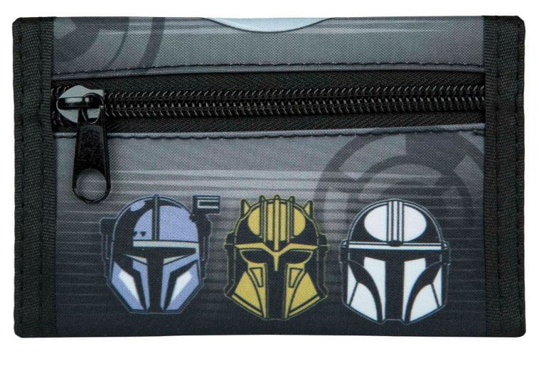 Portfel dla wszystkich fanów Gwiezdnych Wojen! Prostokątny portfel w ciemnym kolorze doskonale sprawdzi się jako prezent dla każdego fana serii Star Wars. Na przedniej stronie znajduje się grafika przedstawiająca Yodę oraz Mandaloriana. Portfel jest składany i zamykany na rzepę. Środek portfela skrywa kilka osobnych kieszeni oraz dodatkową kieszeń zamykaną na zamek w tylnej części portfela. Dodatkowo do portfela został dołączony sznurek, dzięki któremu noszenie portfela będzie jeszcze łatwiejsze.