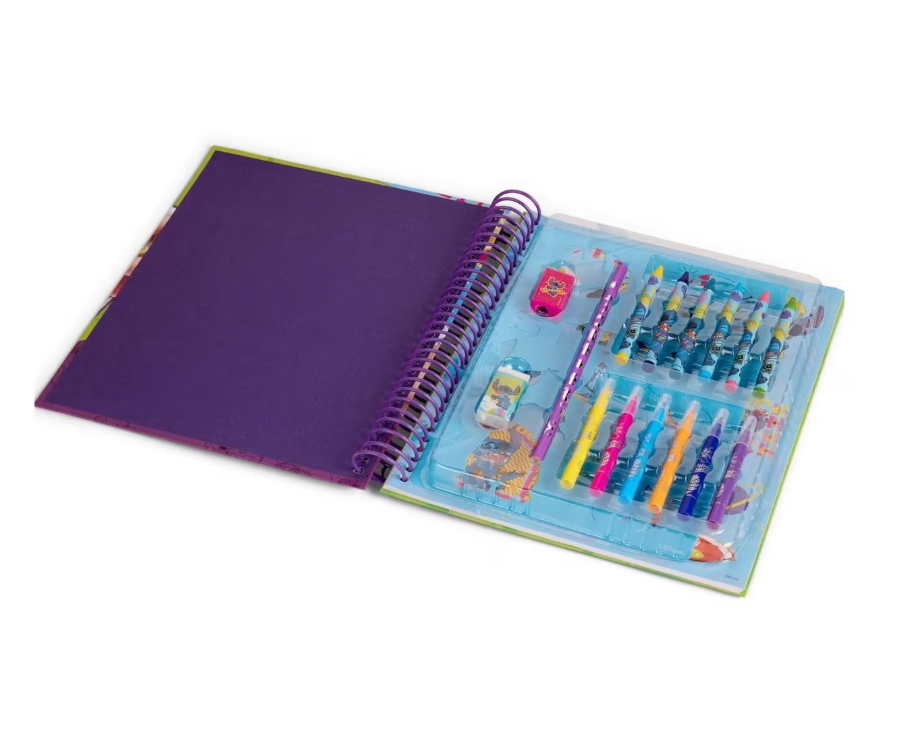 Maluchy mogą kolorować swoje ulubione postacie, rozwiązywać wciągające zadania i korzystać z dołączonych akcesoriów: kredek, markerów, ołówka, gumki oraz szablonów. To idealna propozycja na prezent dla każdego małego fana Sticha i twórczej zabawy!