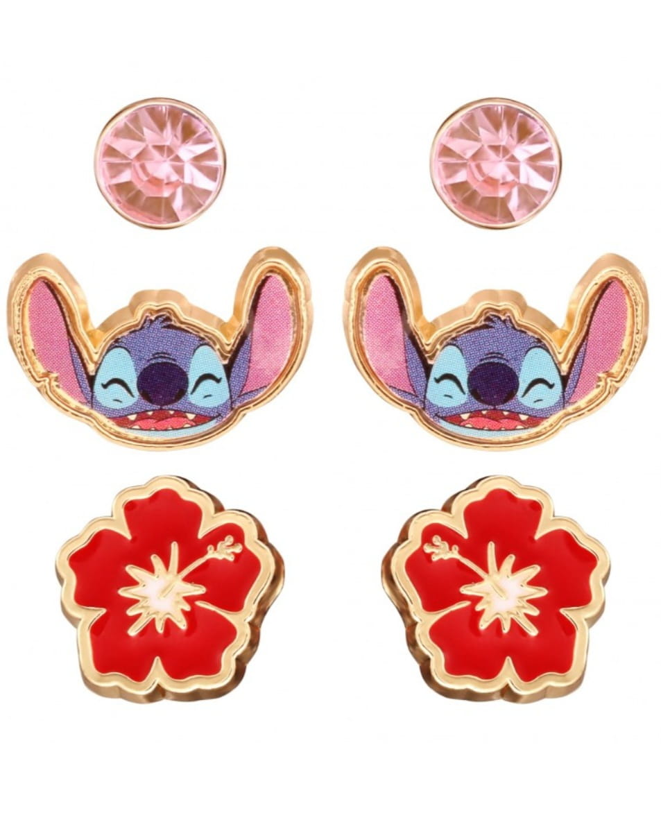 Zestaw 3 par Kolczyków to genialny pomysł dla wszystkich miłośników tego uroczego bohatera! Stitch to wierny kompan Lilo, z którym tworzy przyjacielską relację. W zestawie znajdują się 3 pary kolczyków, które nawiązują do bajki Stitch i Lilo. Pierwsza para kolczyków to urocze różowe kryształki, druga prezentuje postać uśmiechniętego Stitcha, a trzecia to piękny czerowny kwiat. Kolczyki są w postaci sztyftów. Ten uroczy zestaw zachwyci swoim wiernym odwzorowaniem i dbałością o szczegóły!