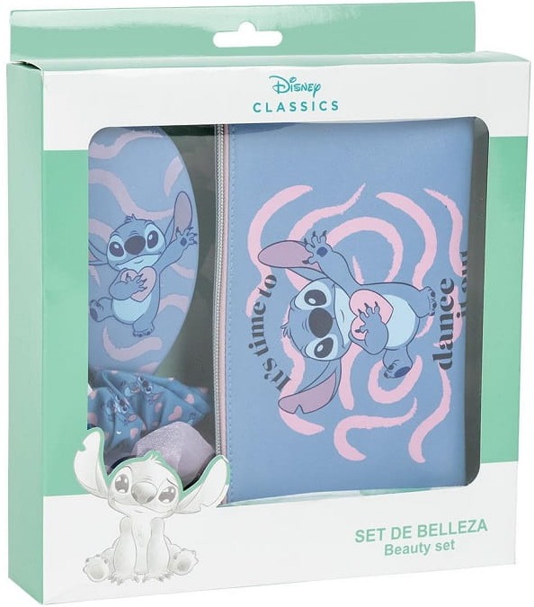 Zestaw 3w1 z kosmetyczką, szczotką i dwoma gumkami to fantastyczne akcesorium, które świetnie sprawdzi się podczas podróży. Cały zestaw zawiera grafiki z uroczym niebieskim stworkiem, dodając uroku przedmiotom. Zestaw zachwyci każdą miłośniczkę Stitcha.
