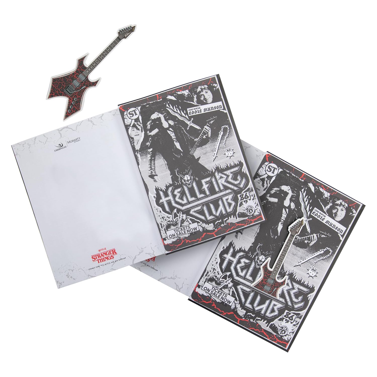 Notes Hellfire Club zamykany jest na gumkę, a do zestawu dołączono zakładkę w kształcie gitary Eddiego. Notatnik ma 160 stron.