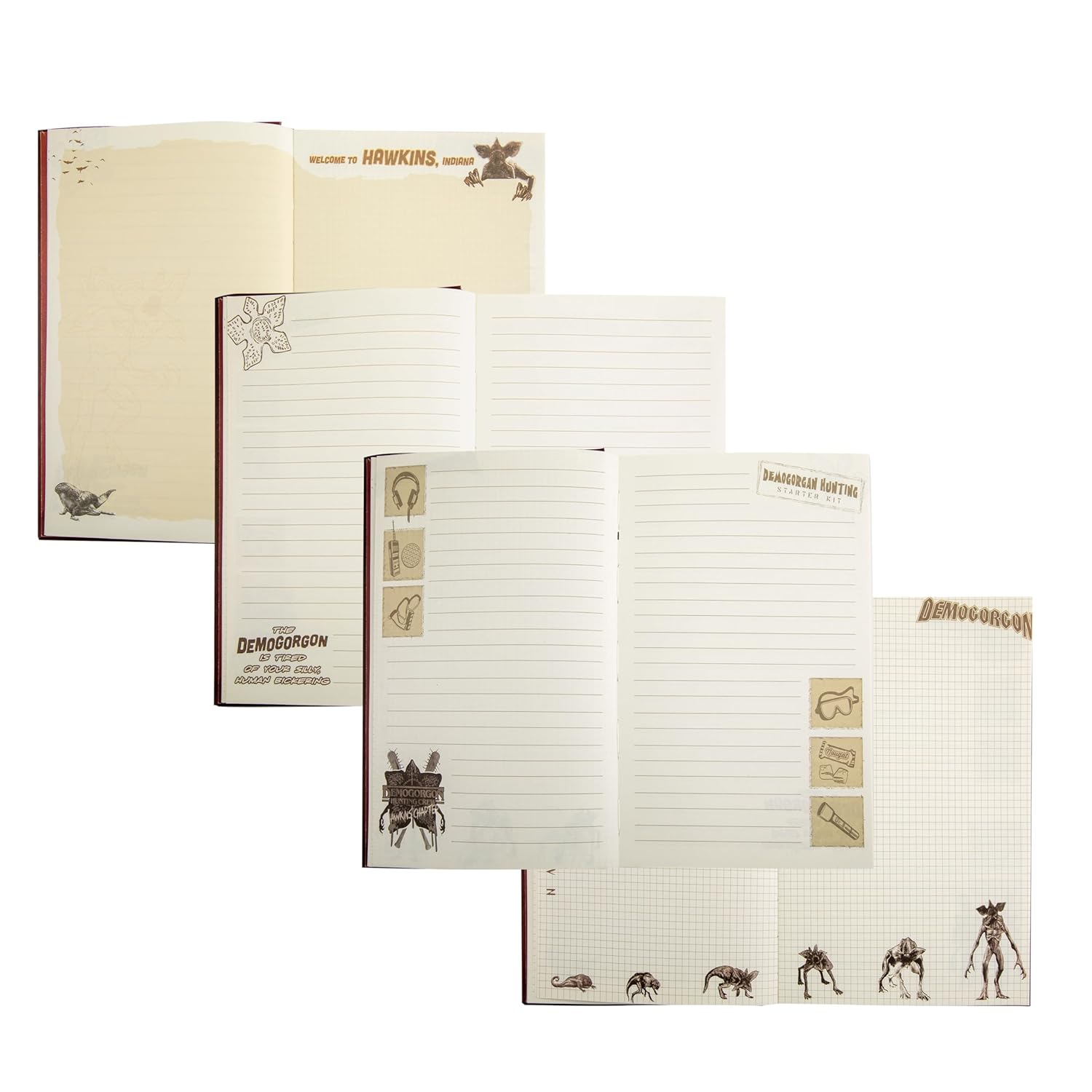 Notes z wizerunkiem straszliwego Demogorgona stanie się dobrym pomysłem na podarek dla wszystkich fanów serialu Stranger Things emitowanego na platformie Netflix. Notatnik ma twardą oprawę i w całości wystylizowany jest na wzór serialowej rzeczywistości lat 80tych. Okładka przedstawia Demogorgona oraz napisy tematyczne i nazwę miasteczka "Hawkins"; każda kartka jest kremowego koloru i posiada nadruki rozmaitych elementów znanych z produkcji. Prowadzenie notatek ułatwiają kratki lub linie.