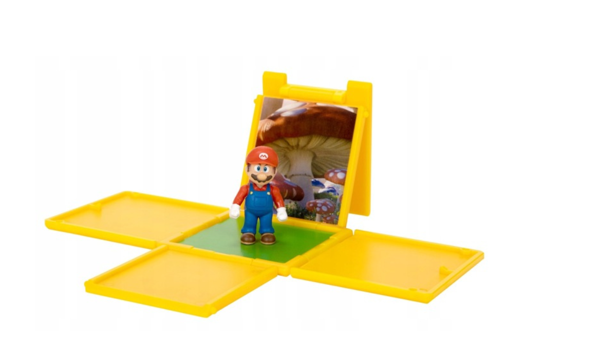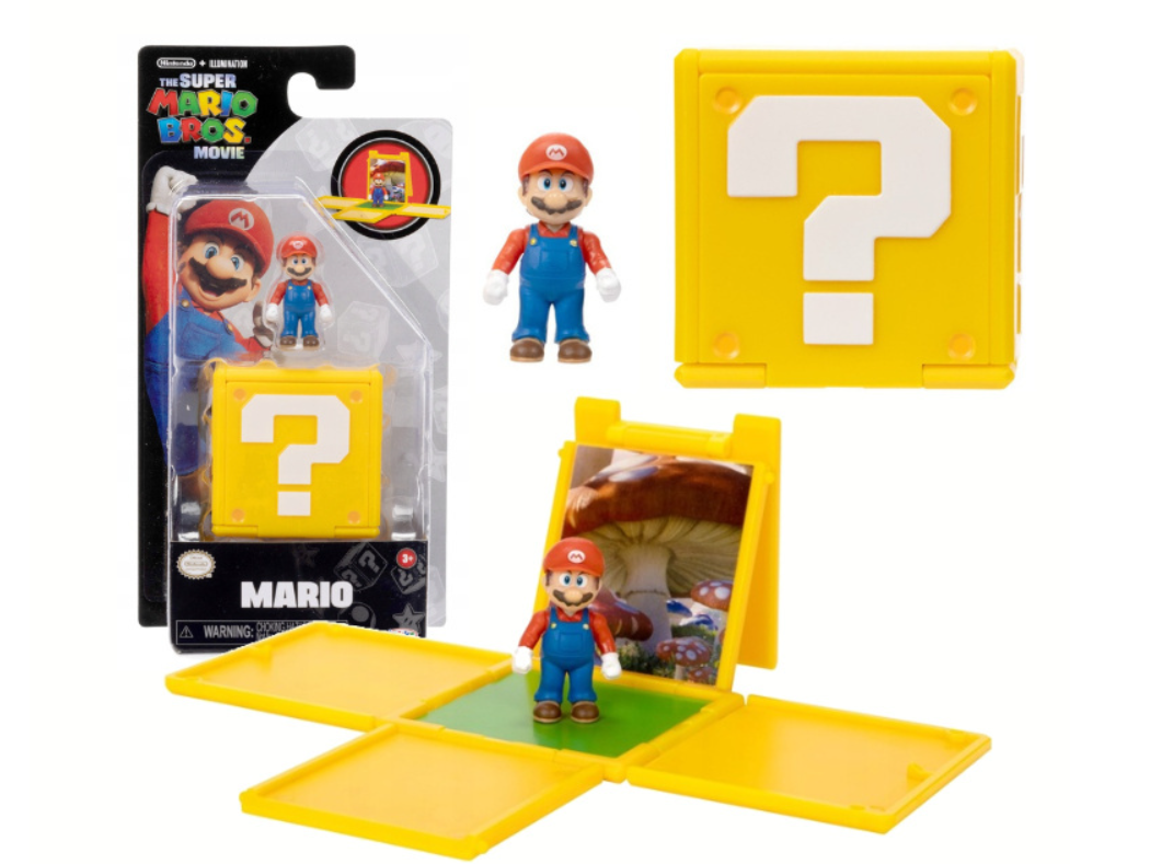 Figurka Mario wiernie oddaje wygląd kultowego bohatera z gry. Ubrany jest w charakterystyczną czerwoną bluzkę z długim rękawem, niebieskie ogrodniczki, białe rękawiczki oraz brązowe buty. Na głowie nosi swoją słynną czerwoną czapkę z literą „M”, a jego wygląd dopełniają brązowe włosy, czarne wąsy i niebieskie oczy. Figurka ma ok. 3 cm, a w zestawie znajdziecie też klocek ze znakiem zapytania, który otwiera się, ukazując obrazek z Grzybowego Królestwa.