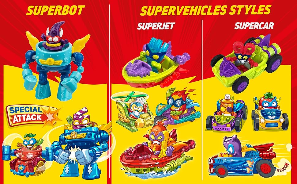 Odkryj niesamowite PowerJets, które pozwalają bohaterom podróżować po Kaboom City z prędkością. Kolekcja obejmuje 12 różnych PowerJetów, każdy z unikalnymi supermocami. Dzięki tym pojazdom walka zyskuje całkiem nowy poziom, pełny emocji i akcji!