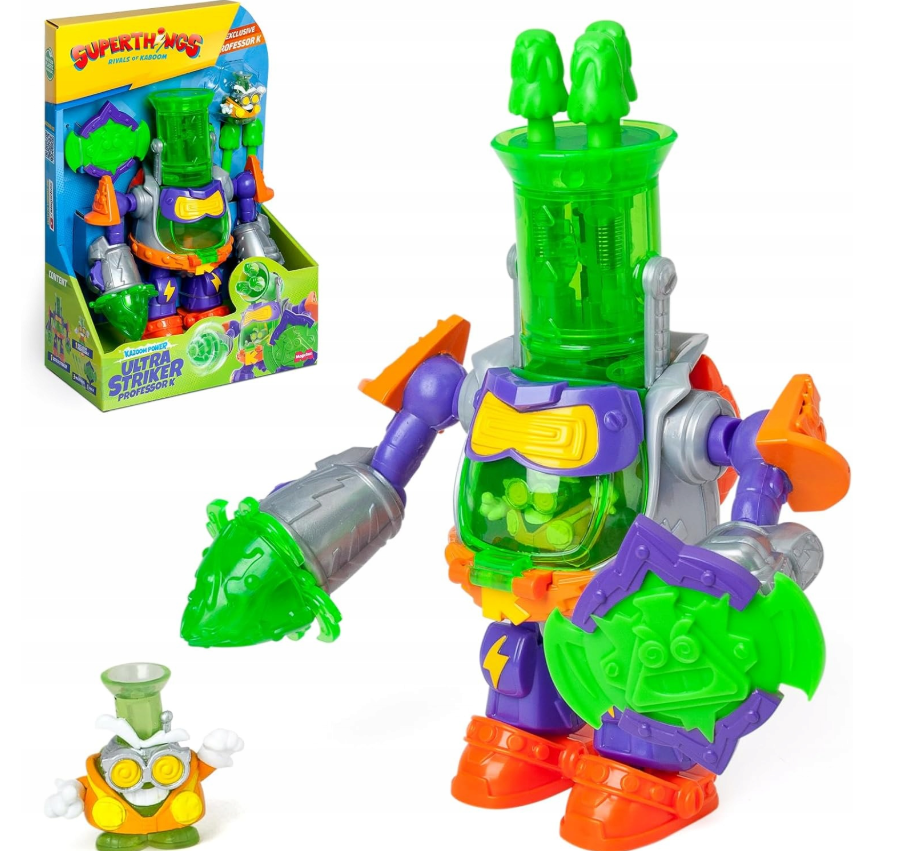 Robot Ultra Striker wyposażony jest w mnóstwo ruchomych elementów i tajnych funkcji bojowych – obracające się ramiona, wyrzutnie pocisków i kokpit, w którym może zasiąść Profesor K. Dzięki temu zabawa nabiera zupełnie nowego wymiaru!