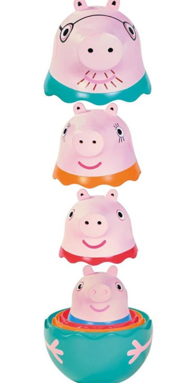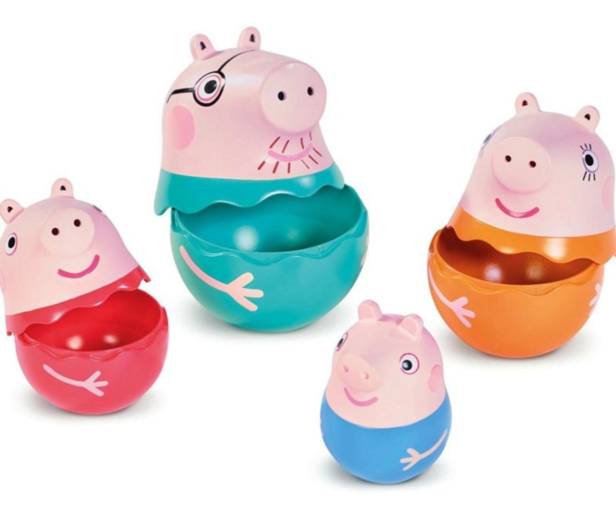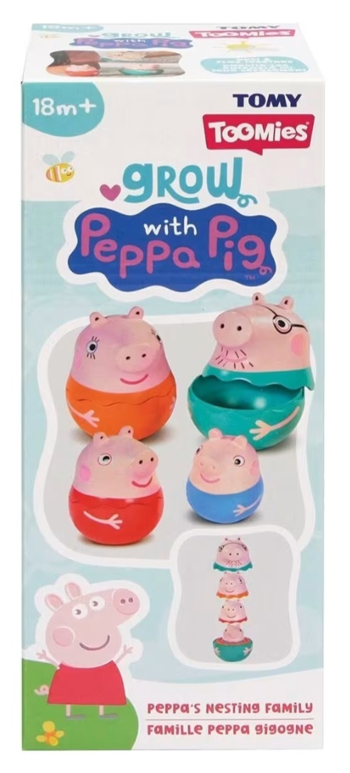 Rodzinna matrioszka Peppy to kilka zabawek w jednej! To dlatego, że w środku ukrywa się cała rodzina Świnki Peppy. Na pierwszy rzut oka to Tata Świnka z szerokim uśmiechem. W środku odkryjesz Mamę Świnkę. Oddziel ponownie, a pojawi się Świnka Peppa. Na samym końcu pojawia się mały George, który kręci się i grzechocze, gdy nim potrząsasz. Idealne dla małych rączek, będą mogły godzinami bawić się, układając kolorowe podstawki w jedną, lub zbierając i sortując elementy, dopasowując rozmiary i kolory. Rodzinna matrioszka Peppy ma tak wiele do zaoferowania, że można ich używać nawet w wannie!