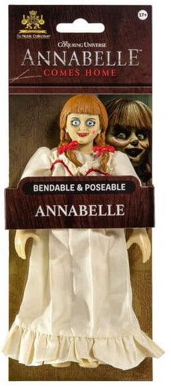 Figurka Annabelle ma ok. 16,5 cm wysokości i przedstawia postać znaną z filmów. Figurka o wyglądzie porcelanowej lalki ma dwa warkocze i długą, białą koszulę z czerwonym paskiem. Figurka Bendyfigs marki The Noble Collction doskonale sprawdzi się dla dorosłych kolekcjonerów i młodzieży powyżej 17. roku życia.