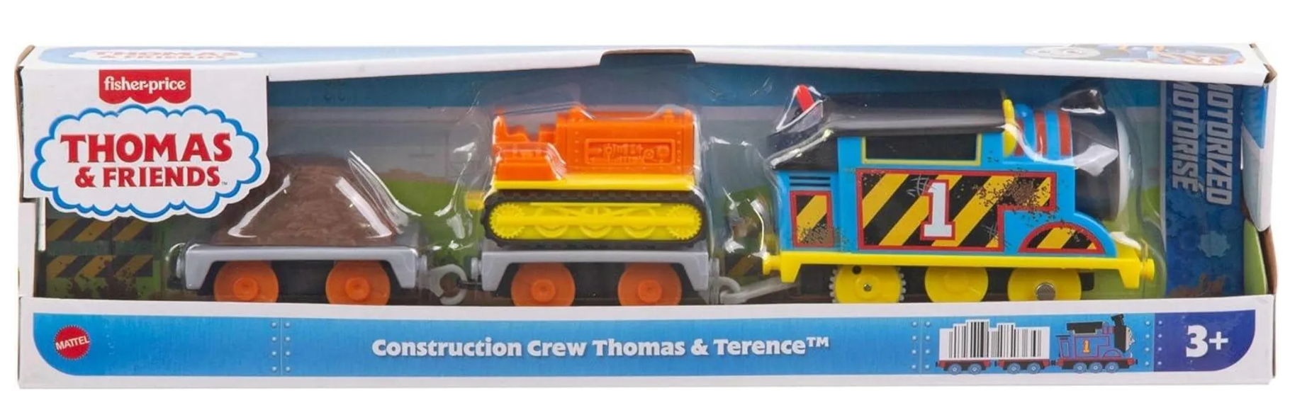 Zestaw Ekipa Budowlana Tomek i Terence z bajki Tomek i Przyjaciele stanie się ciekawym urozmaiceniem każdej zabawy z ulubionymi kolejkami. Kolejka z napędem pozwala odtwarzać sceny z placu budowy oraz tworzyć nowe przygody na torach. Lokomotywa Tomek posiada napęd, ciągnie za sobą dwa wagoniki. Na jednym przewozi Terence'a - pomarańczowy traktor gąsienicowy, a na drugim ziemię potrzebna na placu budowy.