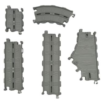 Zestaw zawiera 12 torów, o różnych kształtach i długościach: