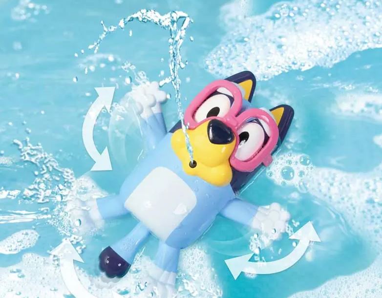 Urocza Bluey uwielbia zabawy w wodzie i chętnie dołączy do wspólnych chwil podczas kąpieli! Maluchy mogą zaprosić Bluey do wspólnego odkrywania podwodnych terenów, zwłaszcza że figurka marki Tomy potrafi nie tylko unosić się na powierzchni, ale również umie wytwarzać spektakularną fontannę, której strumień może osiągnąć aż 40 cm wysokości! Super, prawda? Figurka do kąpieli Bluey wygląda dokładnie jak bajkowa bohaterka - jest biało-niebieskim pieskiem ze szpiczastymi uszkami i różowymi okularami! Zanurz postać w wodzie i pociągnij za ogon, by zabawka mogła się napełnić - czas na odjazdowy pokaz wodny!