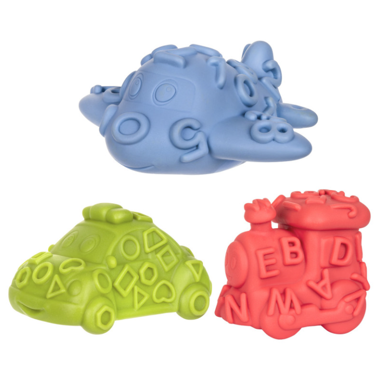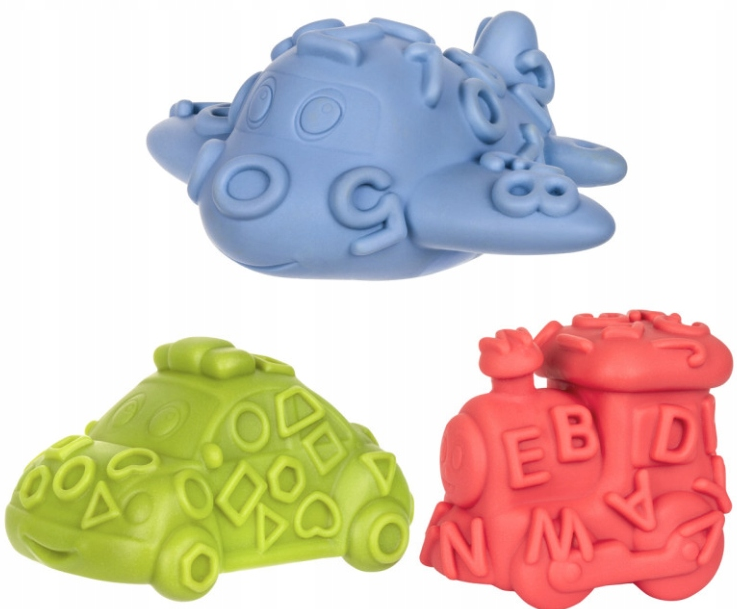 Zabawki są lekkie i poręczne, co czyni je doskonałymi zarówno do zabawy w domu, jak i podczas kąpieli. Wykonano je z bezpiecznych, certyfikowanych materiałów, pozbawionych otworów – dzięki czemu nie gromadzą się w nich pleśń ani bakterie. Miękka struktura z delikatnymi wypustkami masującymi dziąsła pozwala również używać ich jako gryzaków. Dodatkowo, faktury w formie cyfr, liter i figur geometrycznych wspierają rozwój poznawczy dziecka, ucząc poprzez dotyk i zabawę.