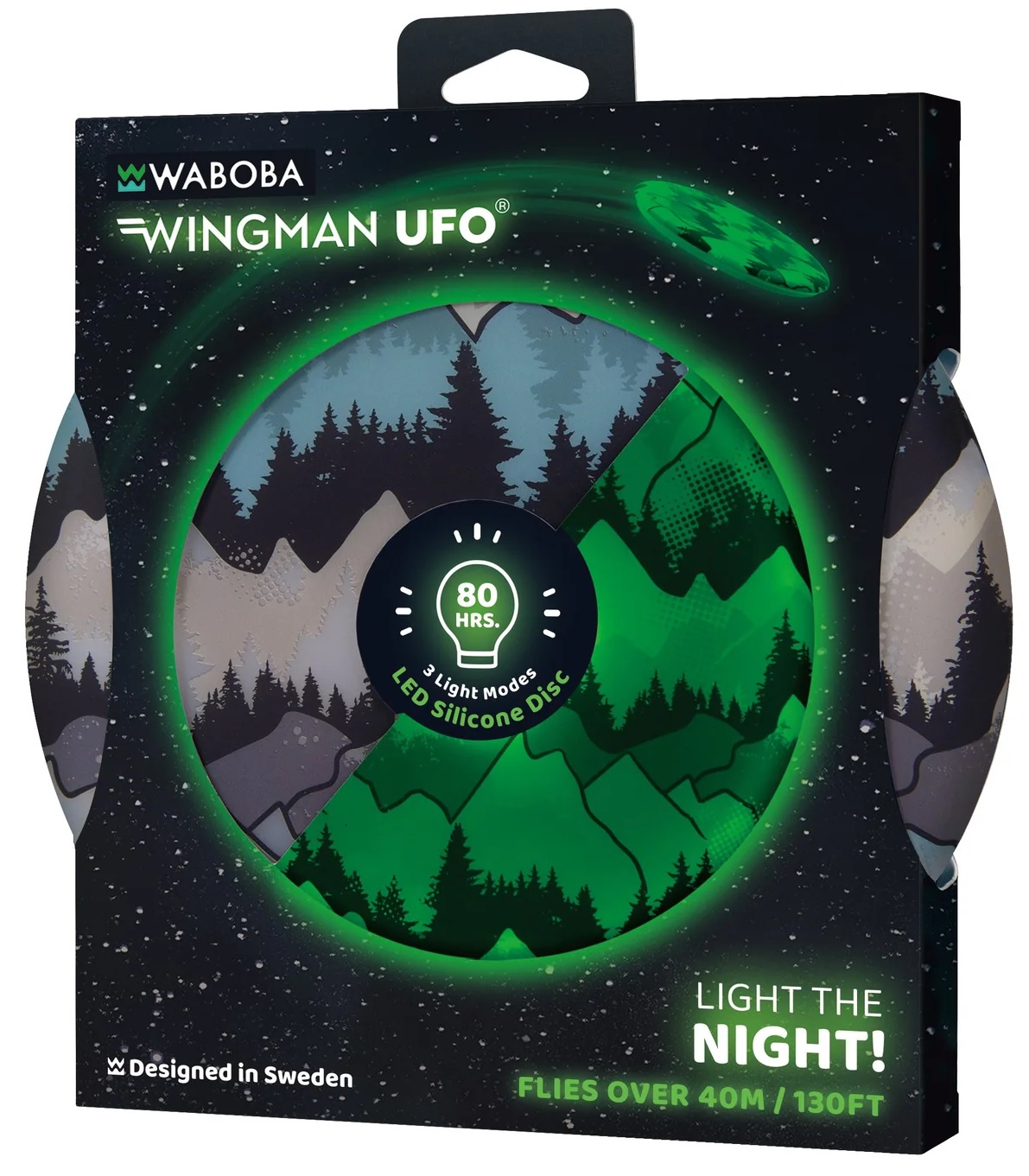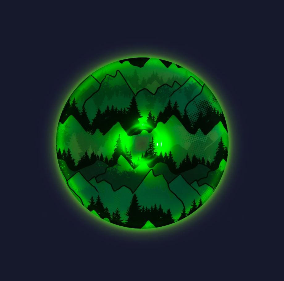 Silikonowe frisbee Waboba z podświetleniem LED to fantastyczny gadżet, który sprawdzi się zarówno podczas zabawy w dzień, jak i w nocy - migające światełka umożliwią szybkie zlokalizowanie i oddawanie dalekich rzutów, zwłaszcza że frisbee może lecieć nawet na odległość 40 metrów! Produkt nie nadaje się do użytku w wodzie. Frisbee UFO Led z nadrukowanym wzorem gór dedykowane jest dzieciom powyżej 6. roku życia.