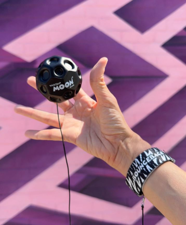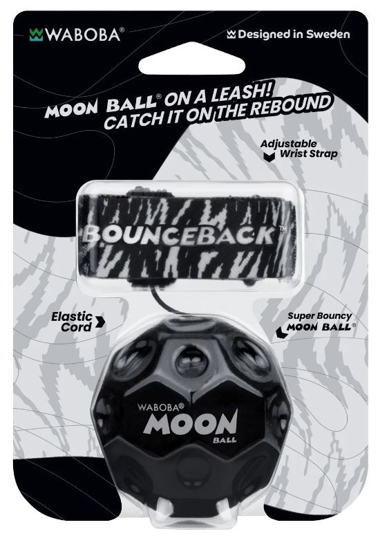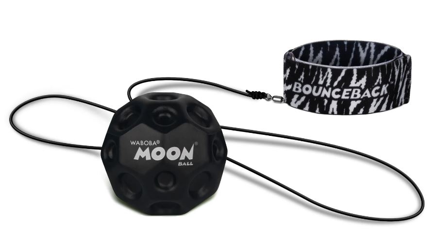 Zabawa z piłeczkami Moon Ball od Waboba może zyskać zupełnie inny wymiar! Linia Bounceback zaprojektowana została w taki sposób, by móc samodzielnie organizować treningi w rzucaniu i łapaniu! Do każdej piłeczki dołączono bowiem opaskę na nadgarstek, która połączona jest rozciągliwą linką o długości 90 cm. Takie rozwiązanie zapewnia możliwość samodzielnej zabawy bez obaw, że piłka zaginie czy odbije się w niepowołane miejsce. Warto pamiętać, że piłeczka Waboba to nadal ten sam produkt, który odbija się jakby grawitacja nie istniała!