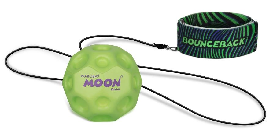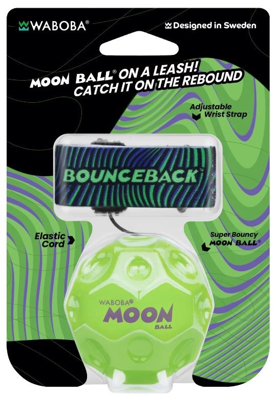 Zabawa z piłeczkami Moon Ball od Waboba może zyskać zupełnie inny wymiar! Linia Bounceback zaprojektowana została w taki sposób, by móc samodzielnie organizować treningi w rzucaniu i łapaniu! Do każdej piłeczki dołączono bowiem opaskę na nadgarstek, która połączona jest rozciągliwą linką o długości 90 cm. Takie rozwiązanie zapewnia możliwość samodzielnej zabawy bez obaw, że piłka zaginie czy odbije się w niepowołane miejsce. Warto pamiętać, że piłeczka Waboba to nadal ten sam produkt, który odbija się jakby grawitacja nie istniała!