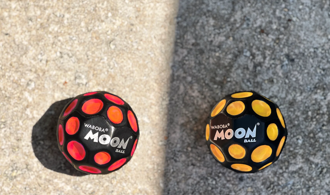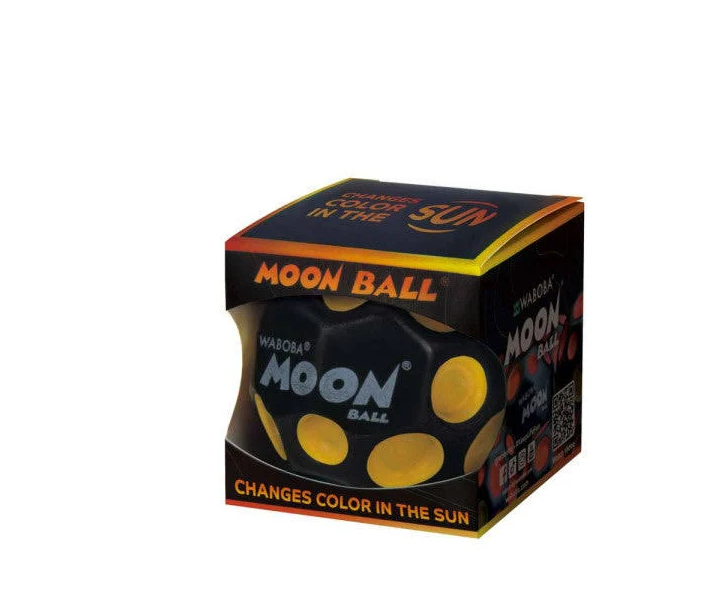 Nowa piłka Moon Ball zmienia kolor pod wpływem działania światła. Żółte dołeczki pod wpływem promieni UV stają się czerwone! Kula o średnicy 63 mm odbija się na wysokość 30 metrów, wydając przy odbijaniu krótki, charakterystyczny dźwięk "pop". Wykonana z poliuretanu jest bardzo wytrzymała i odporna na intensywna zabawę.