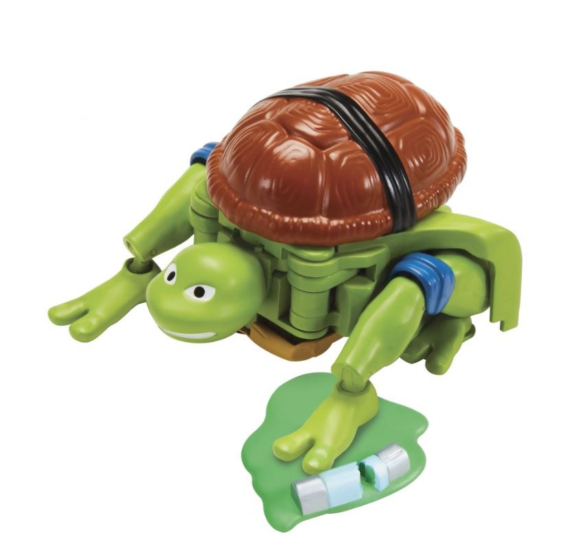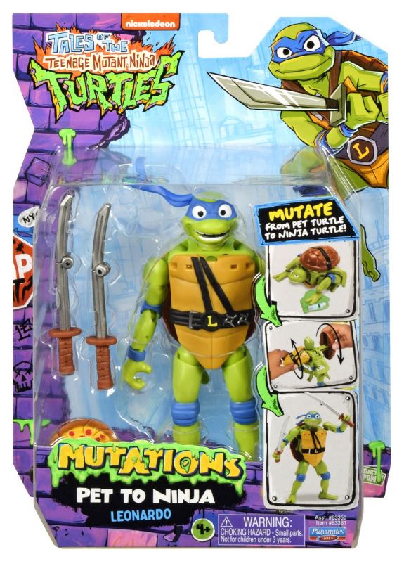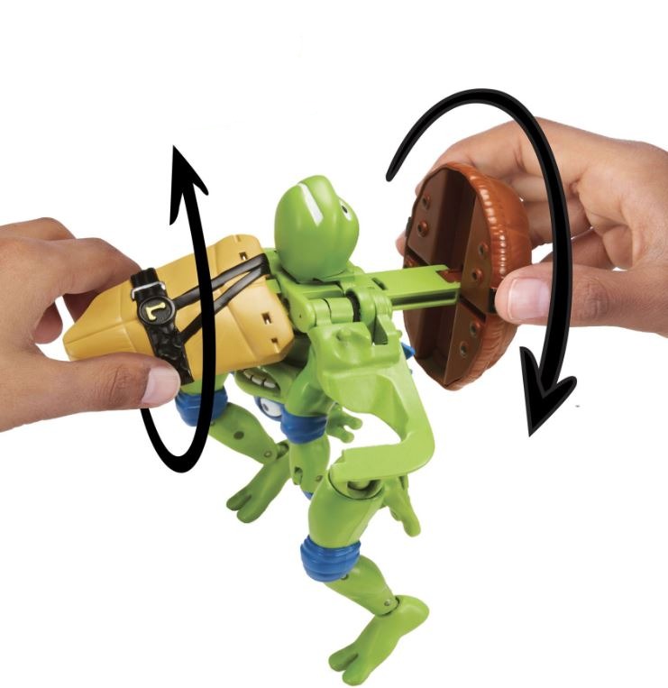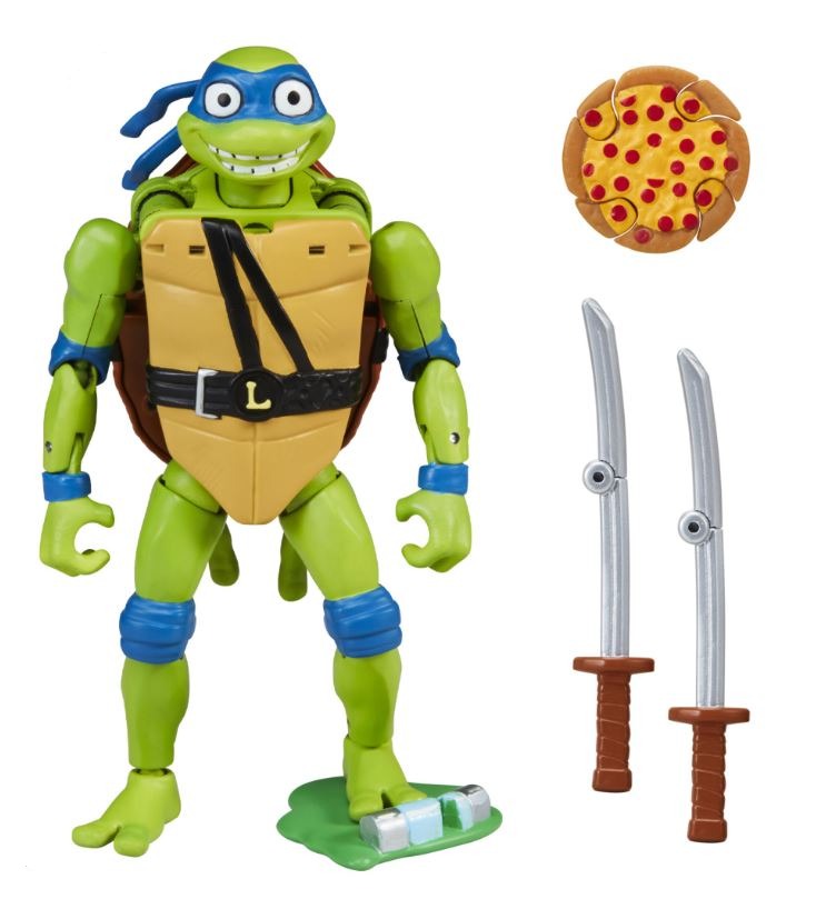 Zestaw zawiera 13 cm figurkę Leonarda, do którego dołączone zostały akcesoria w postaci dwóch mieczy oraz gwiazdy- pizzy. Dodatkowo figurka ulega transformacji. Transformacja jest niezwykle prosta- wystarczy pociągnąć i przekręcić przednią skorupę. Zatrzaśnij skorupy z powrotem na miejscu i wkrocz do akcji! Leo w swojej formie ninja, niezwykle ruchomy, jest gotowy do pełnych akcji bitewnych póz!