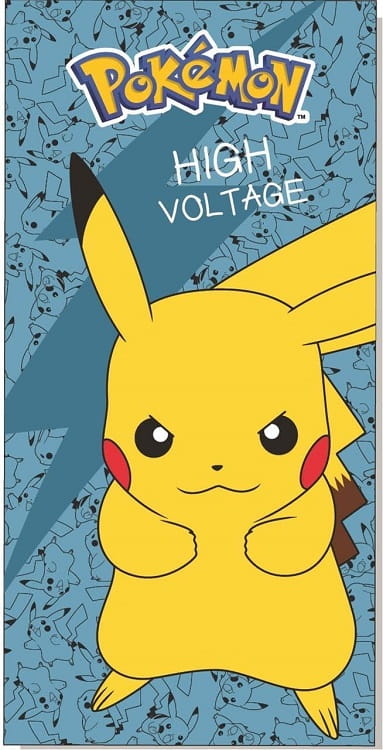Ręcznik plażowy z kolekcji Pokemon posłuży zarówno podczas wypoczynku na plaży, basenie czy w ogrodzie. Ręcznik ma wymiary 140 cm x 70 cm i na całej powierzchni znajduje się nadruk rozzłoszczonego Pikachu oraz napisy tematyczne.