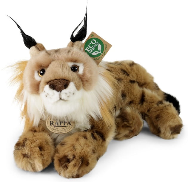 Maskotka czeskiej firmy Rappa przedstawia uroczego leżącego Rysia, który wygląda dokładnie jak prawdziwe zwierzątko! Pluszak został bardzo szczegółowo dopracowany, mierzy 28 cm długości i w całości pokryty został miękkim pluszem.