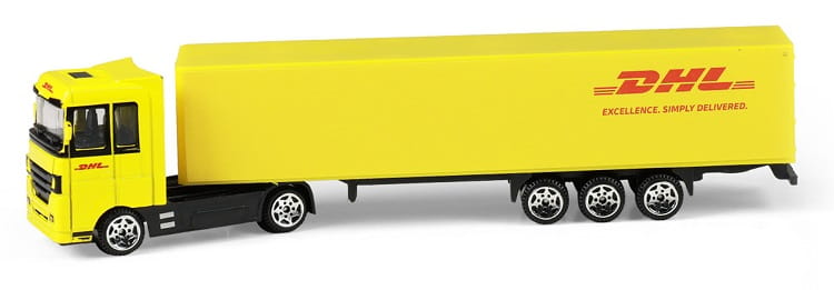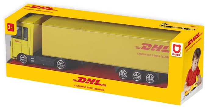 Samochód ciężarowy DHL to najnowszy model pojazdów czeskiej firmy Rappa. Model został bardzo szczegółowo odwzorowany i doskonale sprawdzi się dla wszystkich małych i dużych miłośników motoryzacji. Auto ma żółtą karoserię, a na dużej naczepie widnieje logo firmy kurierskiej.