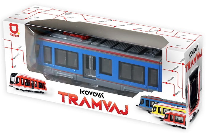 Niebieski tramwaj to klasyczny pojazd, przemierzający ulice dużych czeskich miast - stanie się zatem ciekawym uzupełnieniem domowej kolekcji pojazdów! Tramwaj marki Rappa ma 20 cm długości i został wykonany z metalu; dzrwi można otwierać ręcznie przy użyciu niewielkiej dźwigni.