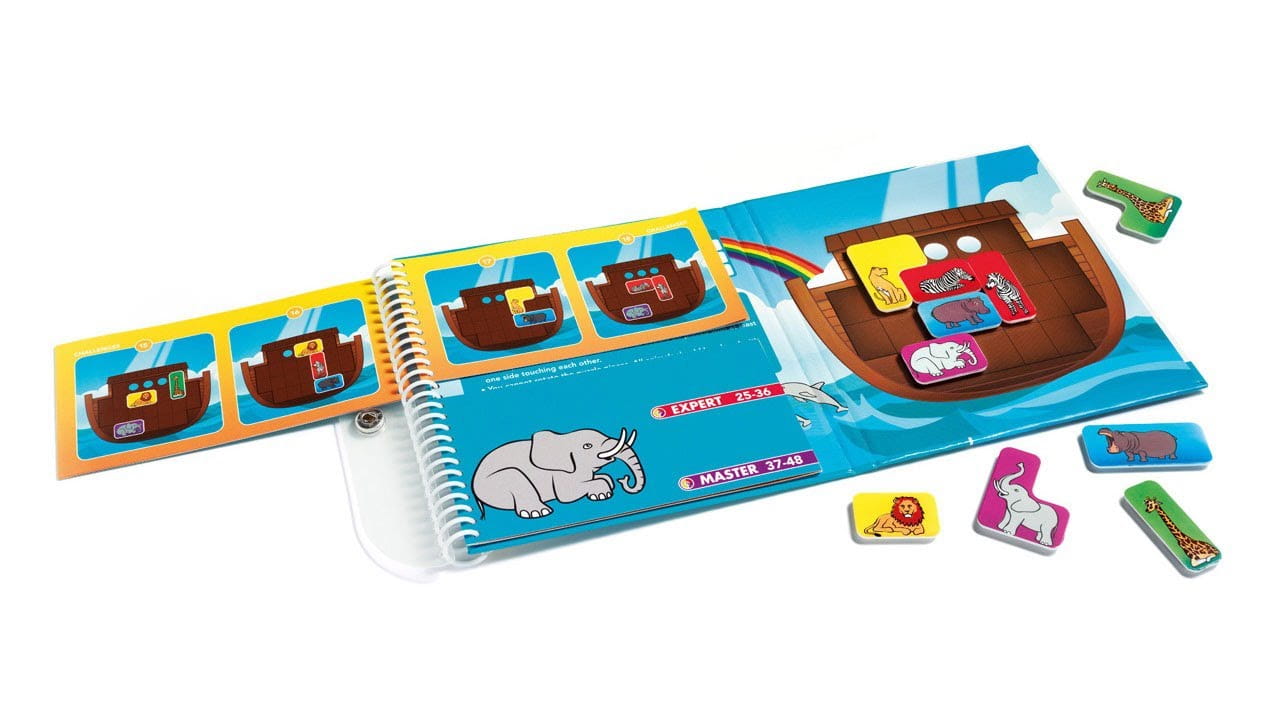 Magnetyczna gra logiczna Smart Games to doskonała propozycja do gry w pojedynkę, która nie tylko umili czas, ale też rozwinie logiczne myślenie i spostrzegawczość. Arka Noego to gra w formie poręcznej książeczki z magnetyczną planszą, na której dzieci mają za zadanie umieścić wszystkie zwierzęta na pokładzie arki tak, aby każda para tego samego gatunku znalazła się obok siebie.