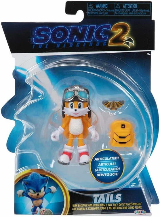 Figurka Tailsa ma 8 cm wysokości i aż 14 punktów artykulacji, dzięki którym może zostać ustawiona w całkowicie dowolnej pozycji. Tails jest żółty, również ma charakterystyczny bujny ogon oraz duże, czerwone buty. Do zestawu dołączono plecak i odznakę. Figurka dedykowana jest dzieciom powyżej 3. roku życia.
