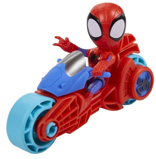 Spidey to główny bohater bajki Spidey i super-kumple, który zawsze jest gotowy, by stanąć w szranki z przeciwnikami. Zestaw zawiera motocykl Spideya - pojazd jest czerwonego koloru, ma turkusowe kółka, niebieski kokpit i srebrną szybkę. Figurka ma ok. 10 cm wysokości i dzięki ruchomym elementom można nie tylko umieszczać ją za sterami pojazdu, ale również ustawiać w całkowicie dowolnej pozycji.