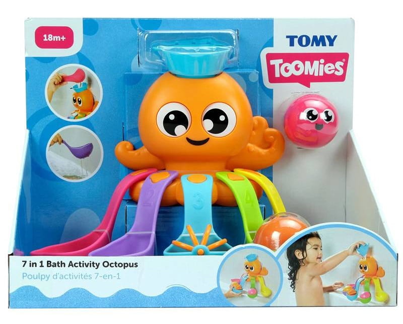 Kąpielowa ośmiorniczka marki Tomy w całości wyprodukowana jest z bezpiecznych materiałów w żywych i wyrazistych kolorach. Produkt przeznaczony jest dla dzieci powyżej 18. miesiąca życia.