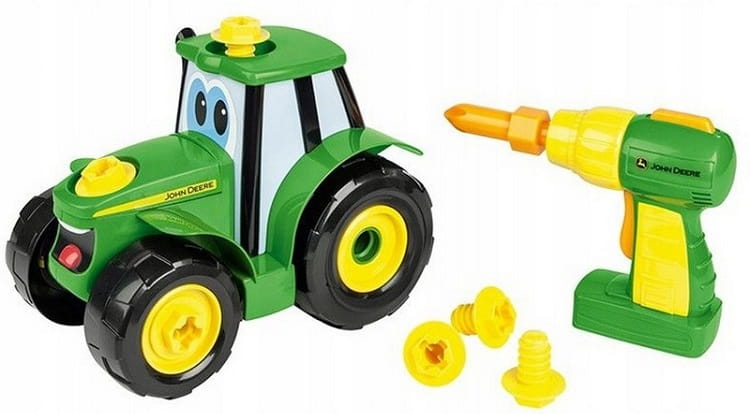 Traktor John Deere do rozkręcania marki Tomy ma 22 cm długości i świetnie sprawdzi się dla maluchów już od 18. miesiąca życia. Poszczególne elementy konstrukcyjne zestawu są duże i z łatwością można nimi operować podczas zabawa w majsterkowicza.