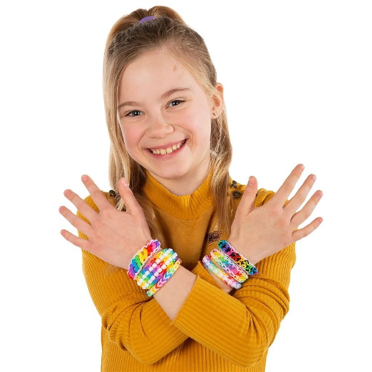 700 elementów, które stanowią tęczowe gumki o różnych odcieniach - gumki zaplata się przy użyciu specjalnego szydełka niczym podczas wykonywania krosna tkackiego. Kolorowe koraliki staną się dodatkową ozdobą, która urozmaici każdą bransoletkę!