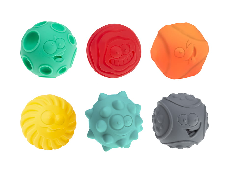 Zestaw sześciu piłek sensorycznych od firmy Tullo. Każda piłeczka ma formę okrągłej buźki - różnorodna faktura na każdej z nich sprawia, że piłki świetnie pobudzają zmysł wzroku, jak również koordynację ręka - oko. Zestaw w całości został wyprodukowany w Polsce, dlatego też produkt jest zupełnie bezpieczny i nadaje się dla niemowląt oraz dzieci w każdym wieku. Co więcej, piłeczki polecane są do wykonywania masażu rozluźniającego napięcie mięśniowe - trudno więc znaleźć artykuł, który byłby bardziej wielofunkcyjny! Piłeczki standardowo sprawdzą się podczas wspólnej zabawy, ale przyniosą również ukojenie podczas trudnego okresu ząbkowania.